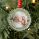 Modern keepsaké baby först jul anpassar prydnadsföremål i kurvan brev och konst av snöflingor som täcker över en festlig grönt med ditt favoritfoto.