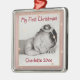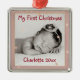 Ett Baby första julprydnad, med namn och år. Designad med guld färgad stjärnor och mjuk rosa gräns. Om du vill anpassa, med hjälp av vår enkla mall, infogar du din favoritbild av baby och klickar på FYLL för att täcka området. Ange sedan namn och år i mallen och byt ut exempeltexten. Du kan justera textens placering: Min första jul och Baby Namn och År för att se till att de placeras som du vill. Om ni skulle vilja ändra texten färg, bara använda Färg-Picker-Verktyg. Det är snabbt och enkelt. Njut!