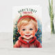 Pojke med ett stort leende och ett stort twinkling ögon skapar ett sött kort för baby första jul, perfekt för vilket barn som helst eller från vem som helst.