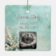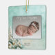 Baby First jul Winter Grönt/Teal Keepie Ceramic Ornament. Den här vintagen är gröntens skogsdekoration en perfekt som är viktig för baby:s första jul. Den har en delikat teal, grönt och vit botanisk design och innehåller ett foto med personligens födelseinformation som namn, datum, vikt och längd på baksidan tillsammans med ett andra foto. De djupa grönt-/tealtoner och de invecklade detaljerna ger tidlös charm, skapar det ett vackert tillägg till din helgdag-décor. En meningsfull keepé som firar din baby först helgdag, den kommer i åratal att bli omhuldad för komen.