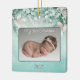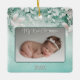 Baby First jul Winter Grönt/Teal Keepie Ceramic Ornament. Den här vintagen är gröntens skogsdekoration en perfekt som är viktig för baby:s första jul. Den har en delikat teal, grönt och vit botanisk design och innehåller ett foto med personligens födelseinformation som namn, datum, vikt och längd på baksidan tillsammans med ett andra foto. De djupa grönt-/tealtoner och de invecklade detaljerna ger tidlös charm, skapar det ett vackert tillägg till din helgdag-décor. En meningsfull keepé som firar din baby först helgdag, den kommer i åratal att bli omhuldad för komen.