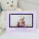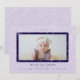 Inför din nya ankomst med det här vågrät-födelseannonskortet, designat med den mysiga snöinspirerade bakgrunden till Baby Flurry. Ett tidlöst sätt att baby foto och detaljer med nära och kära. glädjen över baby:s ankomst med det här vågräts lila-fotofödelsemeddelande. Konstruktionen Baby Flurry har mjuka vinterinspirerade detaljer och handskriven typsnitt i stil för ett modernt men hjärtligt utseende. Perfekt för att markera ett favoritfoto i bredformat, det här kortet innehåller utrymme för baby namn, födelsestatus och ett sött personligt meddelande. En kärv älskad kommer att värna om, och vara en del av den samordnande samlingen av inbjudningar, kontorsmaterial och party från Baby Flurry.