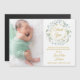 En dekorativ lagerblad grönska girlang födelse meddelande tack magnetkort med ett foto av din nyfödda. Anpassa tackmeddelandet och lägg till din babys namn och födelsedatum. Designad av Thisisnotme©