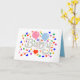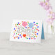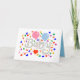 A Horizontal 5"x7", Folded Greeting Card, with a Drawing/Design, of the word Baby, in a Lighter Gray, With a Pink and light Blue Balloon, Some Colorful Confetti and a Red Heart = (Drawing/Design by P.J.M.) on the Front of it. =with the background removed.
