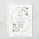 Denna löv och lövverk för eucalyptus för vattenfärg för minimalist och moderiktiga baby showerinbjudansärdrag centrerar enkla gröna på ett guld- geometriskt för faux ramen, med handskrivet skrivar att den något att säga"Oh babyen!",