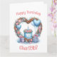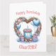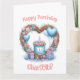 Denna gratulationskort har en akvarellkrans av flätverk och blommor med en tårta med ett ljus. Kortet kan anpassas med ditt barns namn,
