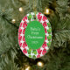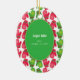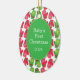 Denna ovala Baby första julprydnad har en god ullhandsbakgrund i mönster. Vinklarna är röda och grönt med en stickad snöflingkonstruktion. Med anpassadets text kan du lägga till året på framsidan och baby namn och födelsedatumet på baksidan.