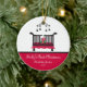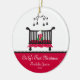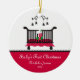 Elegant Black crib med rödströ och 1:a julklappen Baby Första jul. Lägg till dina nyfödda namn och födelsedatum. Perfekt för helgdag eller sändning som ett födelsemeddelande. Kom ihåg att lägga till ett foto av din lilla på baksidan av prydnadsföreställningen!