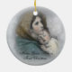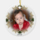 Baby Första julprydnad. Lägg till foton och information för en unik och personlig beröring. Den omvända sidan av dekorationen har en vattenfärgsbild av den välsignade Mor Mary och Baby Jesus.