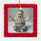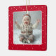 Minneshögtidlighålla ditt mirakel baby i julas med detta vackra fotoprydnadsföremål med en vit rosa polka-punkt på rött med ett foto på ena sidan och din text på baksidan.