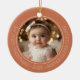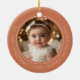 Baby Första jul Rustic Terracotta Modern Two Photo Newborn Namn Ceramic Ornament visar på ett vackert sätt två värdefulla foton av ditt nyfödda, ett på vardera sidan av prydnadsämnet. Bakgrunden till färg är vacker, rustik terracotta. Att omge varje foto är en känslig cirkel, med vit personlig som lyder: "Min första jul - År - Baby Namn" skapar det som en tidlös keepé för nya föräldrar som firar denna speciella milstolpe. Ett tänkvärt sätt att hedra minnet av din baby i första julhelgen, denna utsmyckning är perfekt för familjerelaterade visningar eller gåva till morföräldrar. Lägg till foton från baby, namn och speciella år genom att välja "Anpassa den här mallen" för en verkligt unik helgdag. Om du vill ha fler anpassningsalternativ klickar du på Redigera med Design Verktyg för att justera färg eller typsnitt så att de stämmer överens med din helgdag.