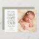 Det här vackra helgdag födelsemärkelse innehåller frasen "vi handlade tysta nätter för en massa glädje" - perfekt för att tillkännage din nyfödda vid jul. Lägg till en anpassningsbar helgdag brev på baksidan och ändra färg så att det stämmer med ditt nyfödda foto!