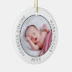 Anpassa den här prydnaden med ditt eget foto, baby namn och födelsestatus för en personlig till träd. Namn, datum, tid och födelsestatus i Baby visas på baksidan av prydnaden.