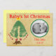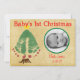 Njut av det här visuella Baby första julfotoportet. Det är dekorerat med en grönt och ett rött baby-fotavtryck Julgran med en stjärna. Och det är personlig med bild om din sötängel, namn och födelsedatum. På baksidan kan du lägga till en egen lista över avsändare av julgranar från hälsning och personlig. Det är perfekt-kortet för Baby 1: a julen!