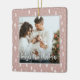 Skölj dina minnen tillsammans med denna vackra julprydnad. Utformningen har "baby första jul" i ett modernt skript-teckensnitt med ditt foto på rosa skisserade gräs mönster-bakgrunden. På baksidan personifierar du med ditt baby namn och födelsestatus. Detta prydnadsämne kommer att vara en viktig anledning att uppskatta för evigt.