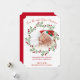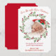 Elegant Adbaby: första julkort Julhälsningar med nyfött baby i tomtehatt inom bergsandningen i ett unikt biljett-format. Baksidan av kortet är julrött. En perfekt att välja för baby första jul! Anpassa för din nyfödd bebis tillfälle.
