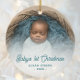 Baby Första julfotto Teal Retro-skript Julgransprydnad Keramik