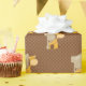 Denna bebis presenterar den första födelsedagdesignen en gullig bebisgiraff bredvid en numrera en med girafftrycket. Bakgrunden av det slående in papperet är en mörk brunt med liten mörkbruntpolka dots.