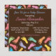 Pantpattern för färgfulla fotavtryck från baby dekorerar denna inbjudan. Enkelt att anpassa. Underbarare för alla gender. Ursprunglig illustration med pj_design.