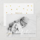 Modern fotobarn födelse anmälningskort för att presentera din vackra nyfödda bebis. Framsidan har ett foto av din bebis tillsammans med chic guld och svart text för ditt barns namn och födelse statistik och ett elegant skript kärlek. Baksidan är strödd med gyllene hjärtan som omger ditt personliga meddelande och namn i matchande chic guld och svart text. Designad av Thisisnotme©