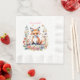 A sweet little baby fox surrounded by pink, purple and blue flowers watercolor illustration girl's personalized baby shower it's a girl paper napkins.