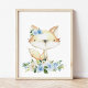 Baby Fox, Woodland Animals, Boho, Blåa blommor Poster