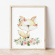 Baby Fox, Woodland Animals, Boho, Rosa Flowers Fototryck