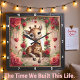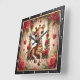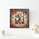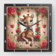 Den här förtjusande fyrkantiga väggklockan har en rörande digital illustration av en söt baby-giraff som vilar bekvämt på en utsirad trädgårdssving. Giraffen har stora, uttrycksfulla bruna ögon och är omgiven av en frodig ram av djupröda rosor och grön lövverk. Ömtåliga gyllene kedjor med hängande, stygnade hjärtekilr smyckar scenen, medan en mjuk, glödande bakgrund skapar en drömlik, romantisk atmosfär. Konsten är placerad i en modern svart trästrukturerad ram med kraftiga vita siffermarkeringar för enkel avläsbarhet. Denna funktionella hemtillbehör är en perfekt dekorativ detalj för barnkammare eller som en genomtänkt present till djurälskare på Alla hjärt