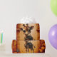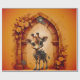 Baby giraffe in steampunk-tecknad framför ro-bågvägen. Upptäck en förtjusande digital konsthändelse: En baby giraffe i en söt tecknad stil, dekorerad med växlar och klockverk, står framför en stift som dekoreras med ro och växlar. Bakom det strålar varm belysning en viskartad, fantasifull atmosfär.