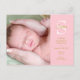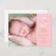 Rosa flicka monogramfoto med foto tack vare vykortet som introducerar ditt vackra nyfödda flicka. Framsidan innehåller ditt foto från baby och en känslig panel på rosan med en personlig vit monokulärtext och guld för din födelsepromemoria. Den omvända texten innehåller ytterligare text som kan vara personlig med ditt tackmeddelande. Designad av Thisisnotme©