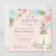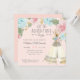 Fyrkantigt format för en unik, iögonfallande baby shower inbjudan tema. Handmålad i akvarell av konstnär och designer, Audrey Jeanne Roberts. Måleriska pastella blå och rosa rosor med en boho teepee och typografi text "låt äventyret börja". Copyright, Audrey Jeanne Roberts.