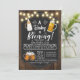 Baby håller på att blåsa inbjudan till babyskor och Flaska Par Shower