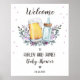 Baby håller på att blåsa välkomstskylt för babysko poster