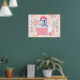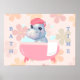 Det är badtid, och här är en underbar baby hippo sitta i ett rosa badkar och bär en rosa turban, som tar ett bubbelbad till behållan. Det finns en söt tapet av blommor i bakgrunden.