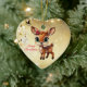 Fira julhelgen med denna unika guld-festive hjort-hjärtkeramiska dekoration med älskare, som har en närliggande tecknad av skogsdjur med en av ett sött baby-hjort med poinsettiska blommor som är inklämda i kronörat, och God jul skriven med rött. Perfekt för att dekorera träd eller som en tankfull gåva gör den här blommigten dekoration en omhuldad keepy för kom i åratal. Anpassa genom att ändra text, teckensnitt, teckensnitt färg eller ta bort texten. Du kan till och med överföra designen till andra produkter. Njut av den här designen! Kolla in ForestBabies Julafton Hjort Collection för matchande dekorationer. 🎄 🦌 ♡