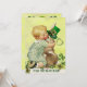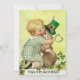 Jag är irländare! Snygg kanin som kramar en söt kanin med leprechaun hatt, grönt schampar, klöver hjärta, vintage stil, viskare design för St Paddy's Day ( St. Patty ) Baksida med en ljus 3D-klistersten med klöver av Bulgan Lumini.