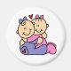 Två flicka, den ena med lila slieper, den andra med rosa slieper ge varandra stora hakar på våra Baby Hugs T-shirts, tote bags, kort, knappar och andra artiklar!