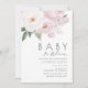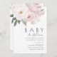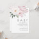baby i blommande tema med vattenfärgade rosa blommor och grönt. Texten och färg kan redigeras.
