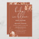 En elegant, en snyggt babyduschinbjudan med elegant, typografi och söt botaniskt harts på en terrakotta bakgrund. Designad av Thisisnotme©