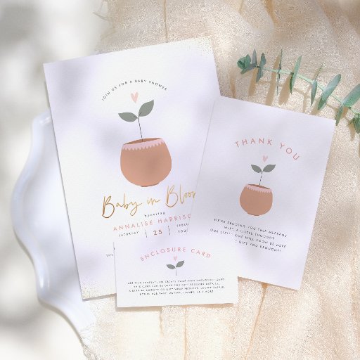Baby i Bloom Heart Plant Pot Guld Baby Shower Inbjudningar