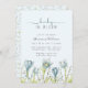 Baby i Bloom-pojkens babyduschinbjudan har vackra blommor i botten av inbjudan med kalligrafi och en blommigt i roligten (som kan tas bort).