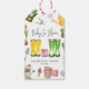 "Baby i Bloom" Mamma pappa och rosa baby-gummistövlar i mitten med blommor och verktyg runt omkring