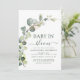 Baby i bloombildsinbjudningar till eukalyptus inbjudningar