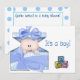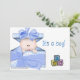 Baby i en presentlåda blå inbjudningar