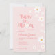Baby i Bloom! Rosa daisy-babyduschinbjudan med 70 stil-daisy och boho typsnitt och färg.