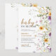 Denna trendiga baby i knopp inbjudan har akvarell rosa, violetta och gula vilda blommor, rustika gröna blad och kvistar. Njut av det!