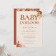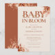 Baby i blomman höst baby shower inbjudan med elegant terrakotta typografi och rustik blomsterlöv. Designad av Thisisnotme©