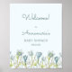 Baby i Bloom-babyduschens välkomstskylt är perfekt till ställe i ram i bord nära ytterdörren för att välkomna gäster. Se samlingen fullt i Bloom för andra objekt.