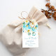 Baby i blomman av sommarblommor i vår tack vare att du föredrar taggar, daisy av pastellblått och vitt knapp för sommarträdgården i vår, personlig av babydusch för för babydusch.