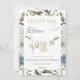 This “Baby in Bloom” thank you card was designed to carry the warmth of the celebration a little further. Soft watercolor florals, delicate greenery, and a sweet baby clothesline illustration create a gentle garden feel—perfect for sending heartfelt thanks after a beautiful baby shower.